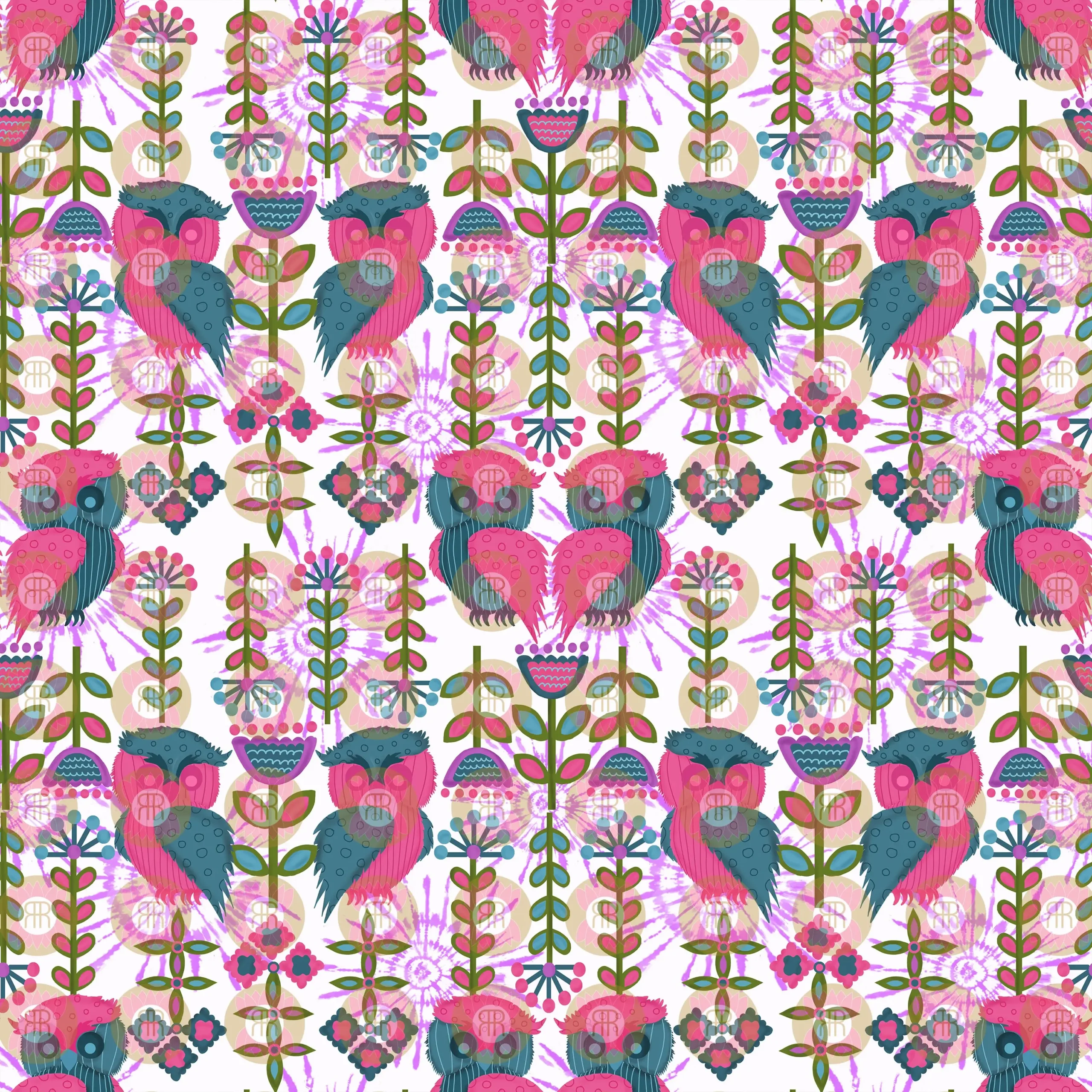 Vibrant and eye catching quirky print featuring colored owl motifs